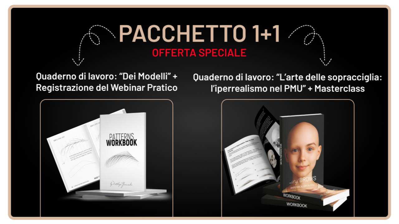 Crea sopracciglia che non sembrano solo reali — ma vive. Questo bundle è il tuo sistema completo: dalla costruzione della struttura perfetta fino alla padronanza di luce, volume e iperrealismo. Due quaderni di successo. Due masterclass esclusive. Un’evoluzione potente.