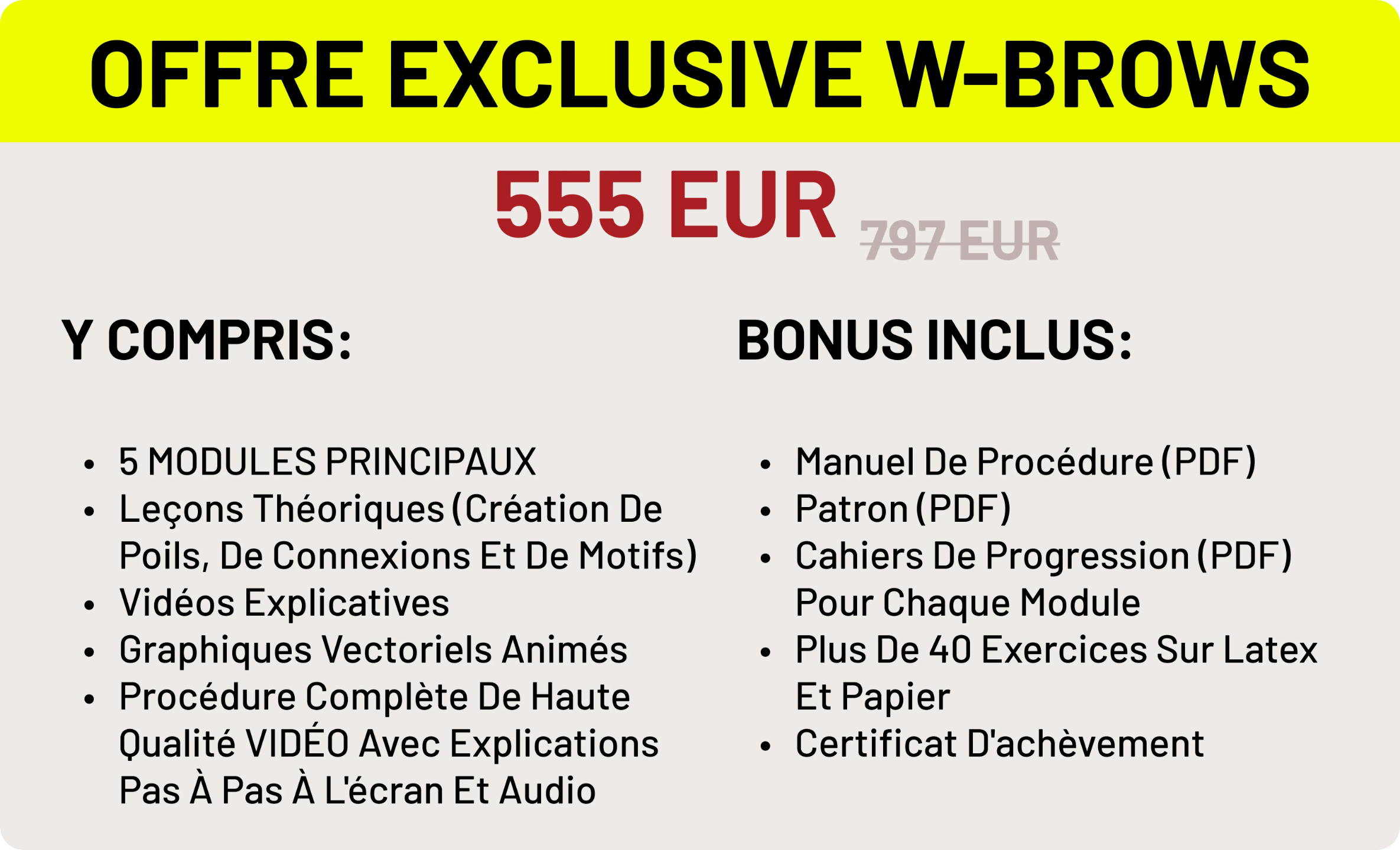 Pendant les prochaines minutes, vous pouvez vous inscrire à la formation W-Brows à un prix spécial ! Cette offre est uniquement pour vous et ne se répétera pas.